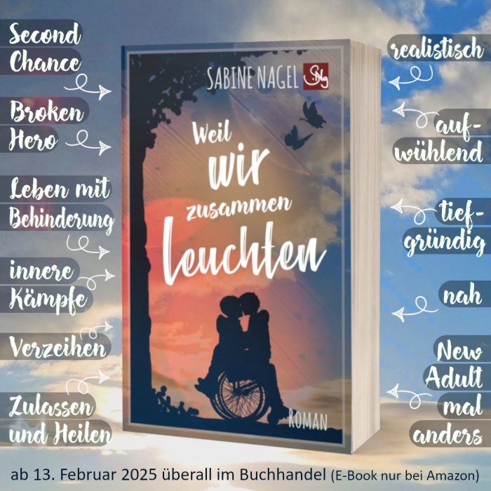 Nach zweieinhalb Jahren Schreibzeit ist es nun so weit: „Weil wir zusammen leuchten“ ist erschienen! Das Schreiberlebnis war sehr intensiv, emotional und (heraus-)fordernd – und die ersten Leser*innen (Vorableser’innen und Blogger*innen) haben bereits rückgemeldet, dass ihr Leseerlebnis ebenfalls sehr intensiv, berührend und fesselnd war. Ich freue mich sehr, das Buch nun in die große, weite Buchwelt zu entlassen.